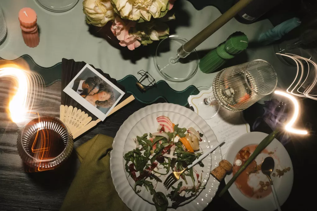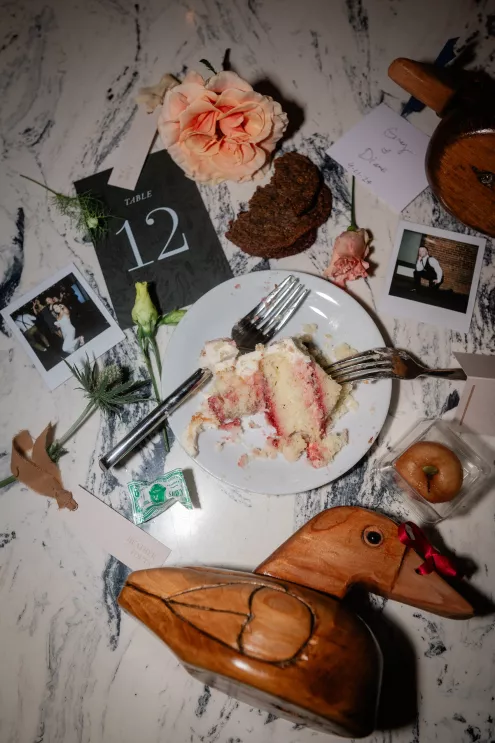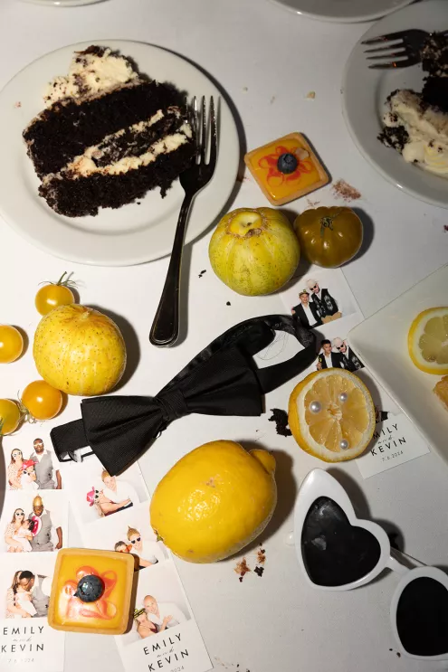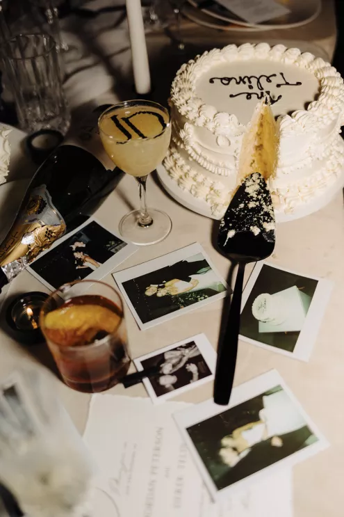 Cocktails, cake and scattered photos conjure up images of a packed dance floor and laughter.