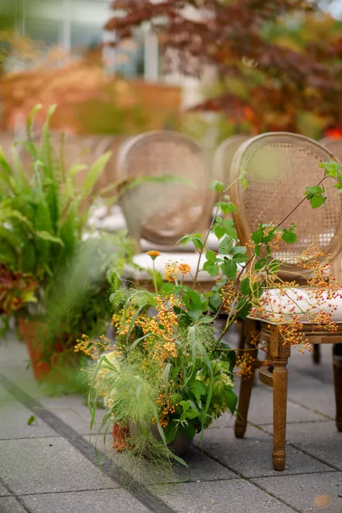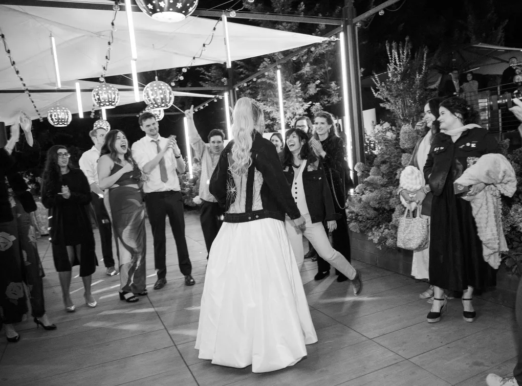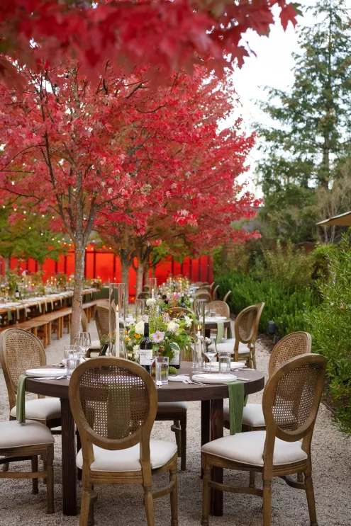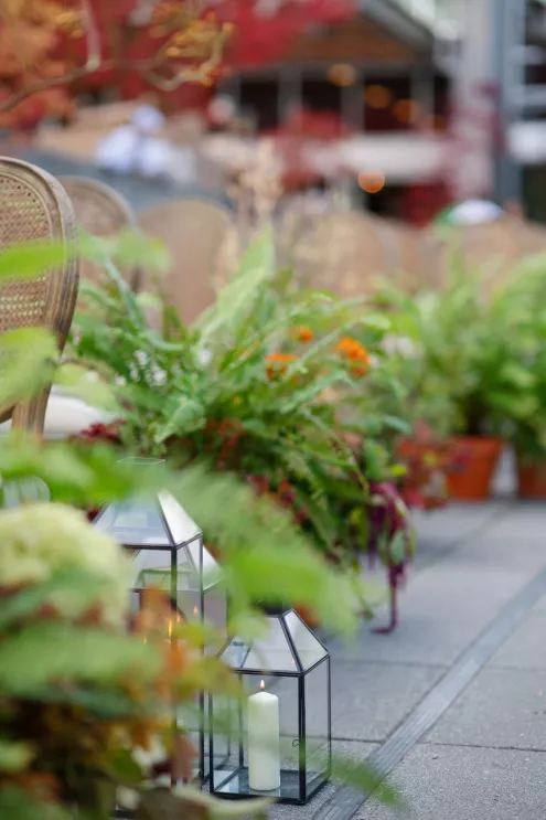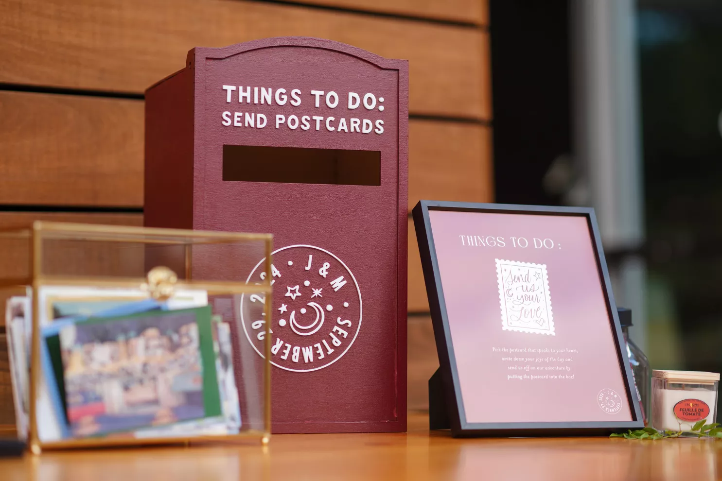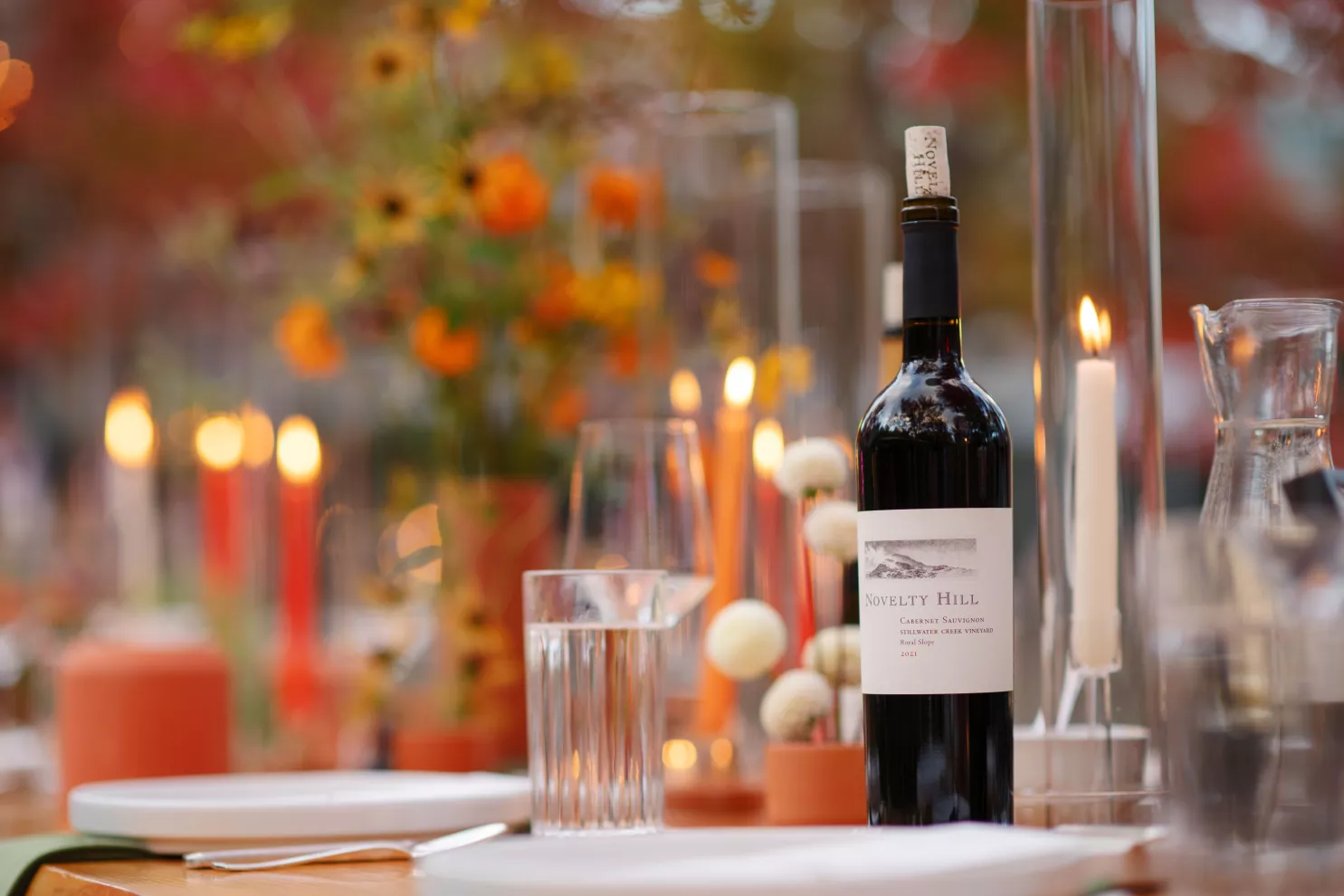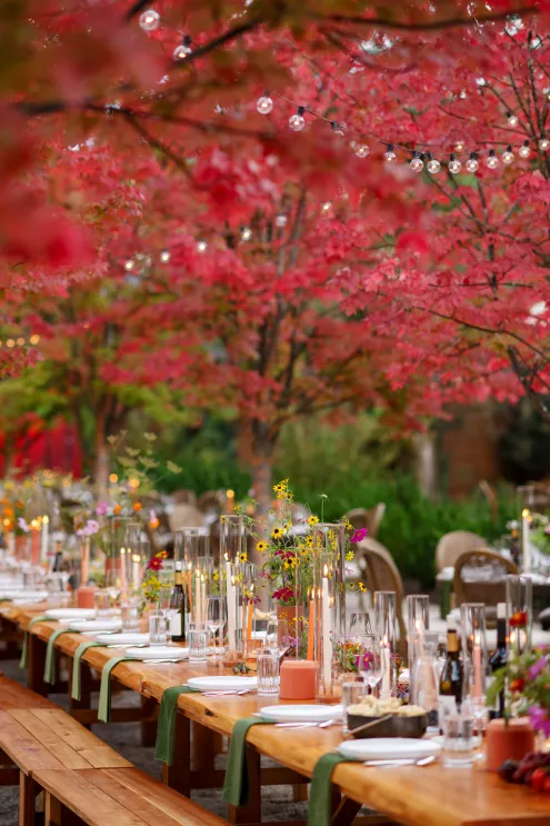 When writers and lovers of the written word, Jess Alberg and Meghan Mock, first met at a New York house party, their connection was instant. But it wasn’t until a tarot card reading at Jess’ house that they realized they were meant to be. While planning their wedding at Novelty Hill–Januik Winery, the pair chose to break traditions at every turn, and, in doing so, splashes of personality were embedded in every aspect of their day. By foregoing a color scheme, the eclectic invitations were fun and fresh with a wide range of fonts, colors and themes. The phrase “Things to do” was included everywhere in the design—particularly the invitations and signage—a reference to the title of the first love poem Jess ever wrote for her bride. Inspiration for the floral arrangements of local stems and fresh produce, including tomatoes and grapes, was drawn from the couple’s sense of fun and desire to have the space overflowing with color and joy. Avid travelers, the couple encouraged their guests to fold and throw paper airplanes during their first kiss, an adventurous detail complemented by postcard save-the-dates and a collection of postcards that served as a creative alternative to a guest book. In addition to a chic library-esque seating chart, a bright orange and maroon drink display featured venue staples and “Meghan Mock-tails,” non-alcoholic drinks with a clever twist on the bride’s last name. Reflecting on their unique, family-driven day, the brides described their celebration as “one big confetti pile of lots of inside jokes, random wants and a whole lotta love.”