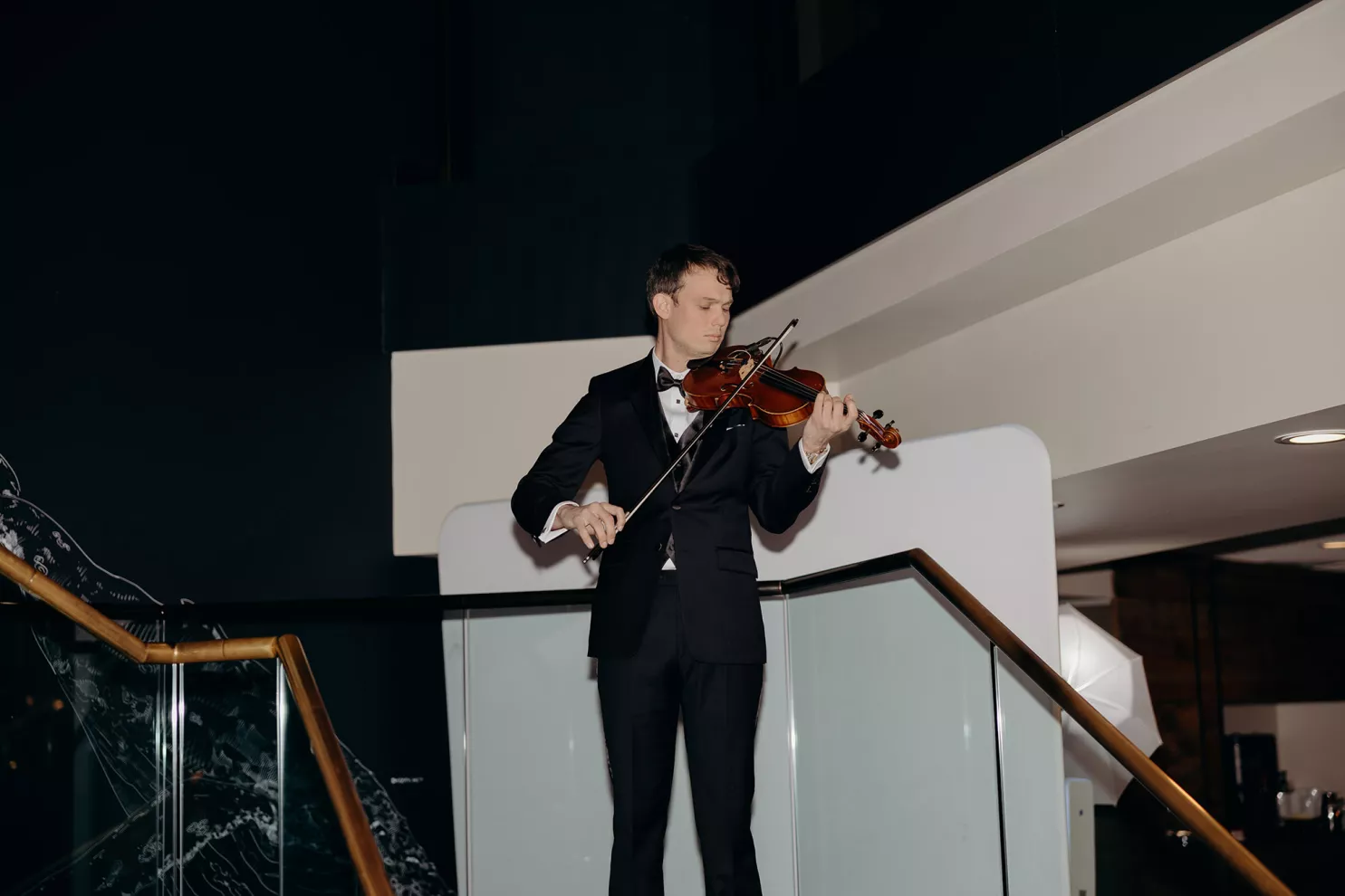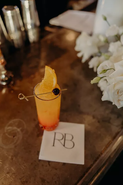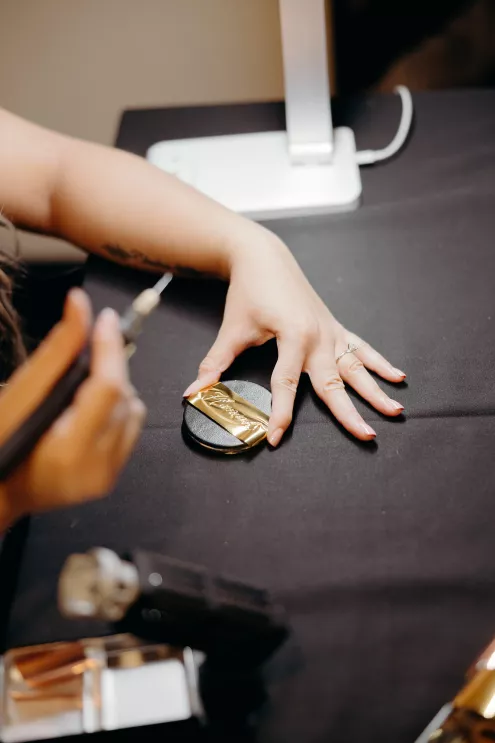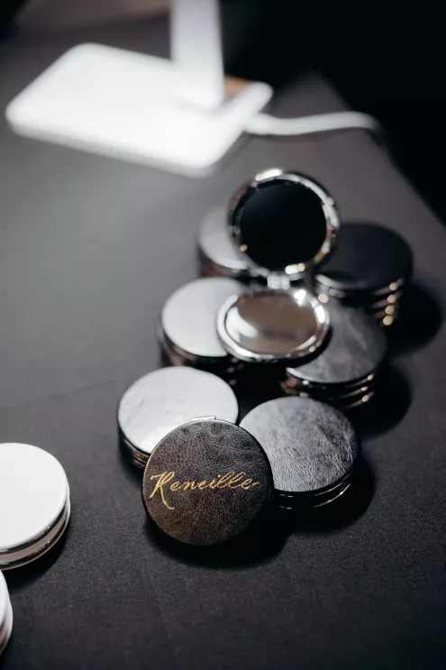 Music was curated with care, blending a nostalgic 2000s R&B playlist with live violin performances that added a soulful, romantic layer to the atmosphere. Every detail was considered, even the favors. Guests left with stylishy, personalized compact mirrors, each hot-foiled with live calligraphy.