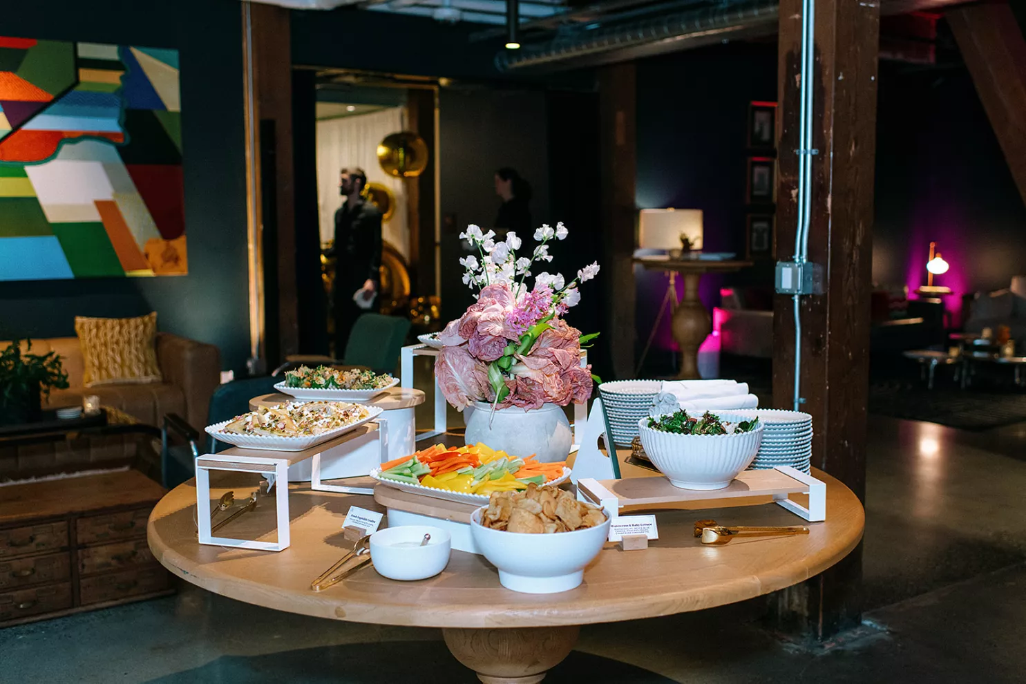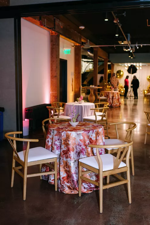 Hosted at Labour Temple, which provided both venue and bar services, guests stepped into a setting layered with furnishings from CORT Party Rental and glowing ambiance created by Crimson Haze Event Lighting. Stationery and signage by Perfect Press Invitations guided attendees throughout the space, while lush arrangements from Busara Flora and playful installations by Seattle Balloon Artist added texture and color to the environment.