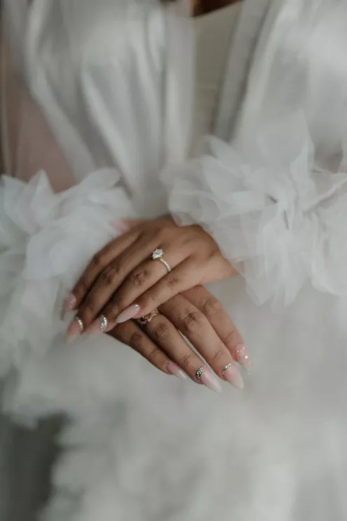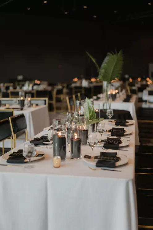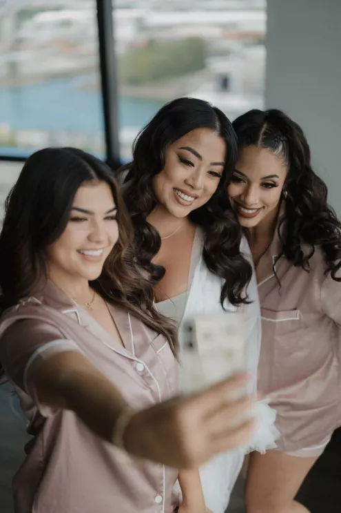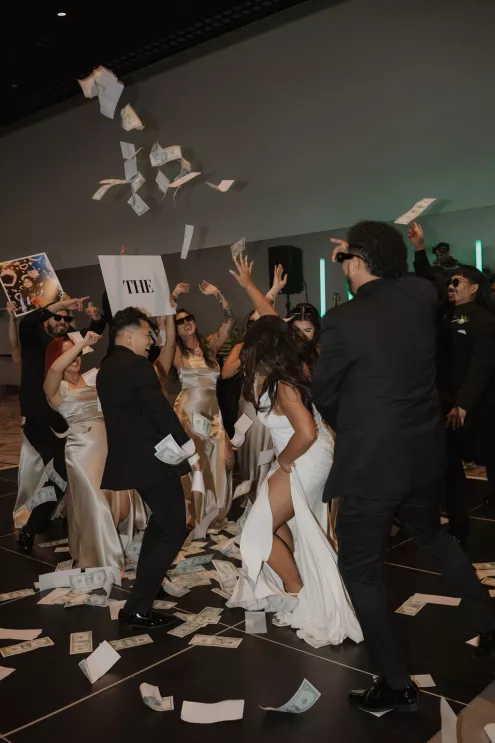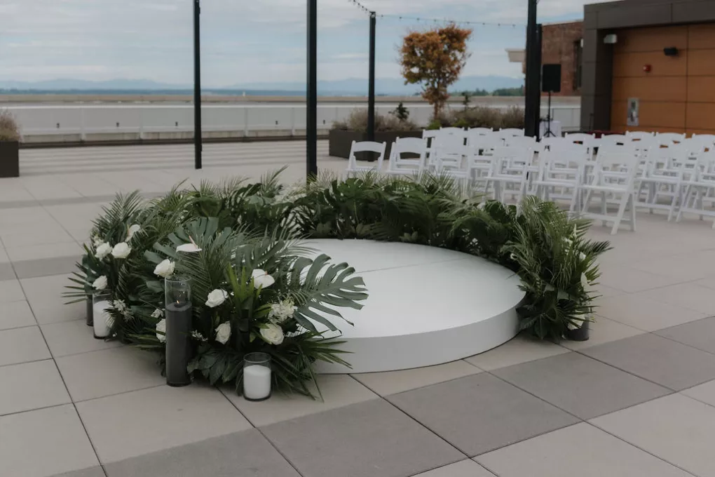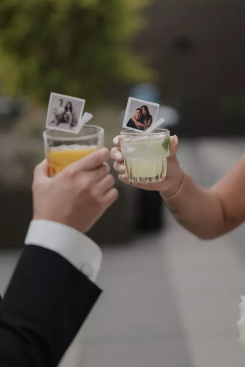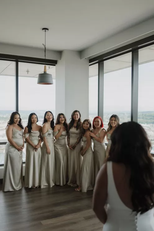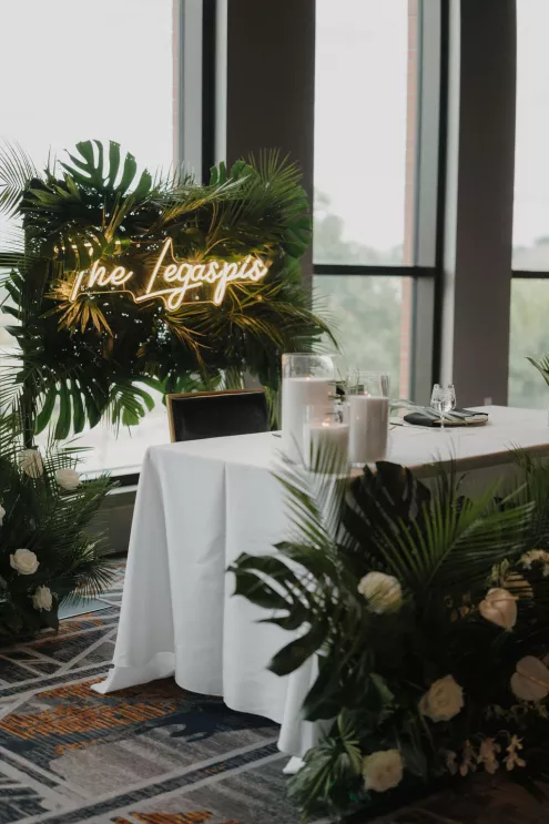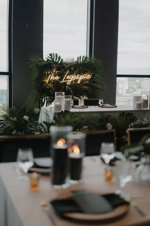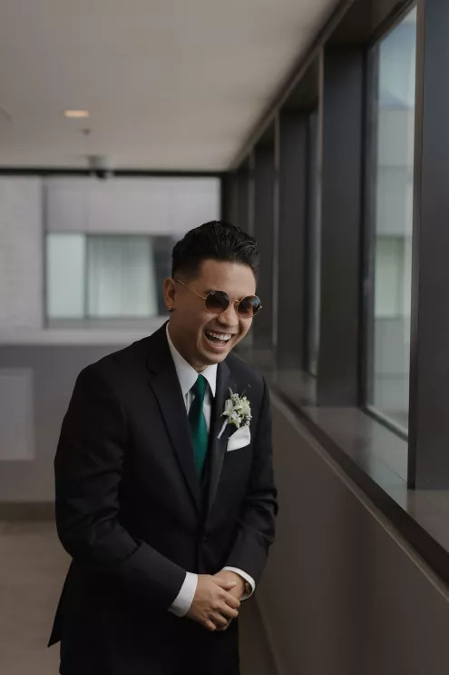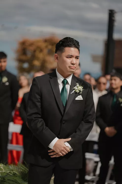 Eight years of adventures and unforgettable experiences built up to Teena Thach and Simon Legaspi’s eclectic wedding day. Simon first encountered Teena when he heard her singing at a Filipino-American Student Association event at Seattle University, but they didn’t actually speak until a year later, when Simon discovered Teena on Instagram and they began exchanging likes and comments on each other’s posts. These led to DMs, video calls and eventually their first date at The Cheesecake Factory. Within a month, the couple discovered a mutual passion for adventures and soon knew they were meant to be together. Simon hatched an elaborate plan to propose to Teena while traveling to Bali to celebrate her birthday. He schemed with friends, flight attendants and the pilot on their airplane to allow Simon to propose over the intercom. When the time came to plan their wedding, the couple embraced classic, black-and-white aesthetics. Tall, bright glass windows and round bouquets of pure white flowers created an elegant atmosphere. The couple took care to personalize their day with fun details, including boba tea. The celebration unfolded on the sunny outdoor terrace while the reception dinner took place in a candlelit ballroom. The night concluded with dancing and joyous music as the couple entered a bright new chapter of their lives