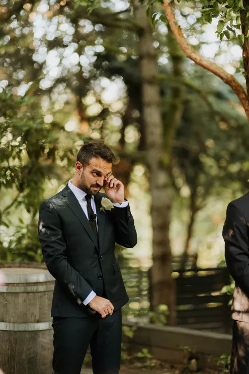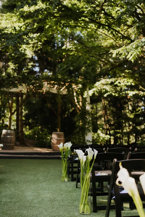 Ensconced by leafy green trees and the enchanting JM Cellars winery, Laura Hawkinson and Tom Radvany became husband and wife.
