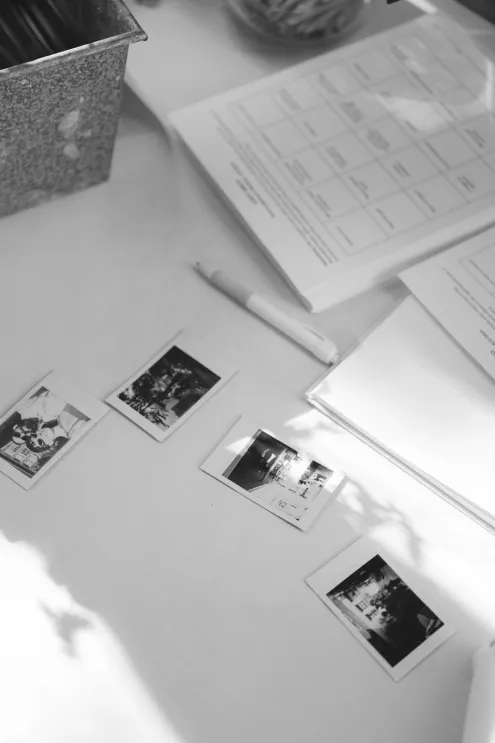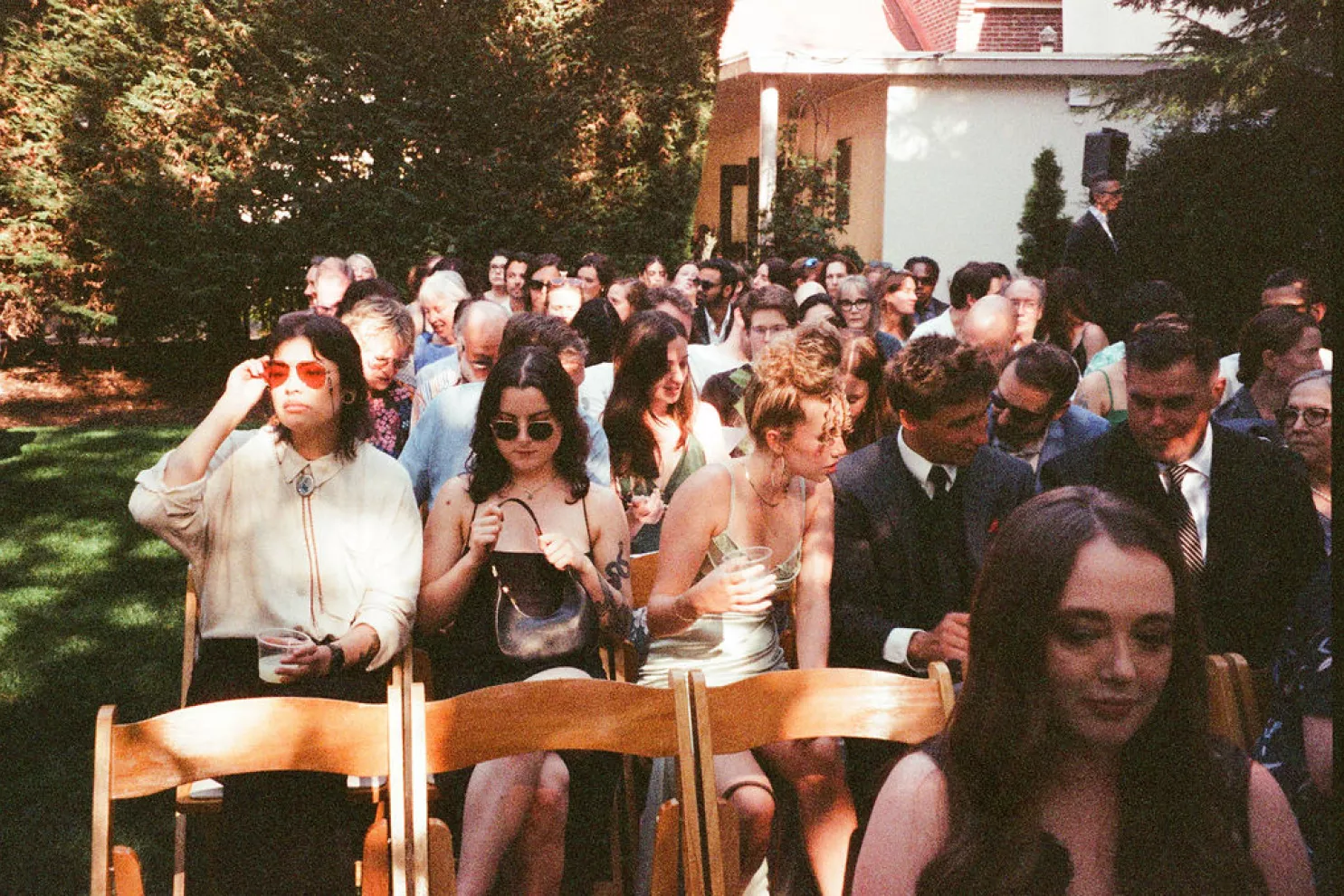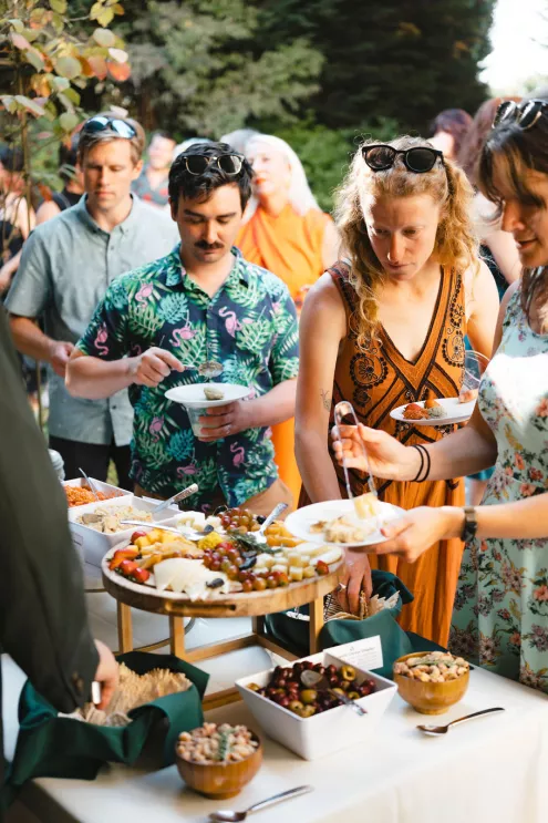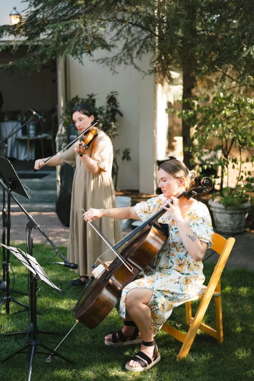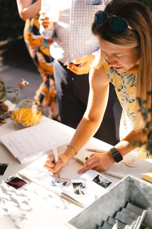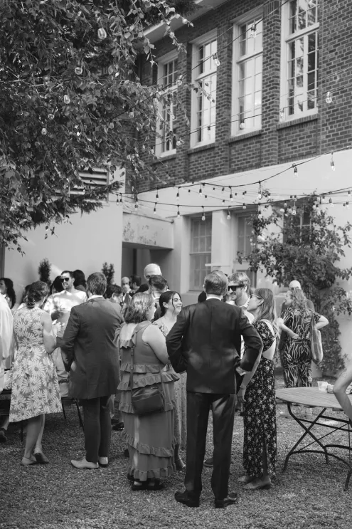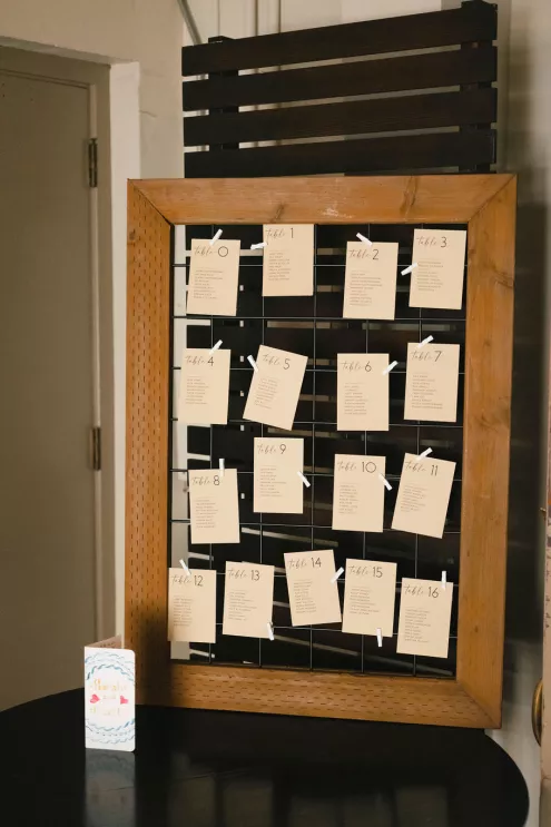 From there, everyone drifted into a courtyard cocktail hour where the mood shifted from ceremony to social experiment — in the best way. Guests were handed bingo cards designed to spark conversation, and they dove in quickly, comparing squares, trading stories and hunting down strangers with shared hobbies like it was a championship sport.