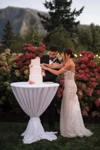 Snow goggles may seem like an unexpected accessory for a gown or suit, but for Shea and Austin, they were the perfect accent for their post-wedding photo shoot. As the winter season of 2022 was winding down, newlyweds Shea and Austin were itching to get back into their wedding day looks and do something adventurous. The idea was a post-wedding shoot, set at Crystal Mountain on one of the very last days of the skiing season, where Shea and Austin could suit up and enjoy the slopes in style with a photographer on-site. Wiley Putnam captured our audacious couple as they glided over mountaintops with refined ease, capturing candid moments of athleticism and love between our couple in their element. The photos were a vast showcase of Washington's winter season with gentle hints of spring popping up, seen in the lush evergreens and elegantly-scattered snow caps.