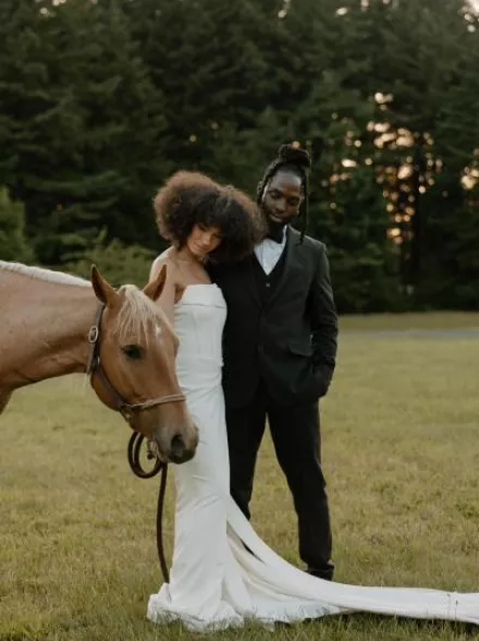 Wild Open Spaces: Crisp Black-Tie Attire and Lively Spring Palette in Imagined Micro-Wedding at Wind Mountain Ranch