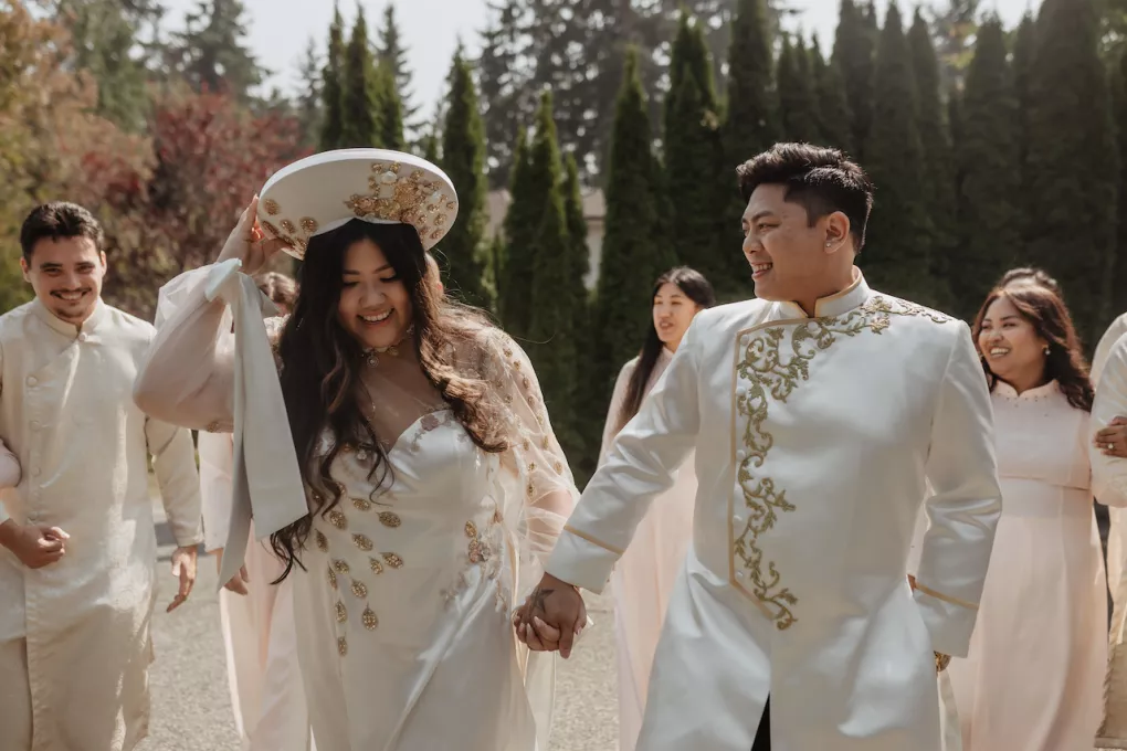 This two-day multicultural wedding blended a traditional Vietnamese tea ceremony, Filipino heritage and a pastel summer garden party just outside Seattle.
