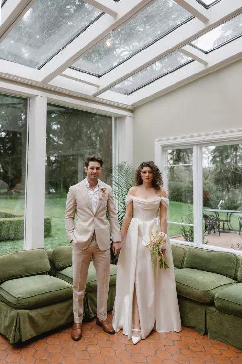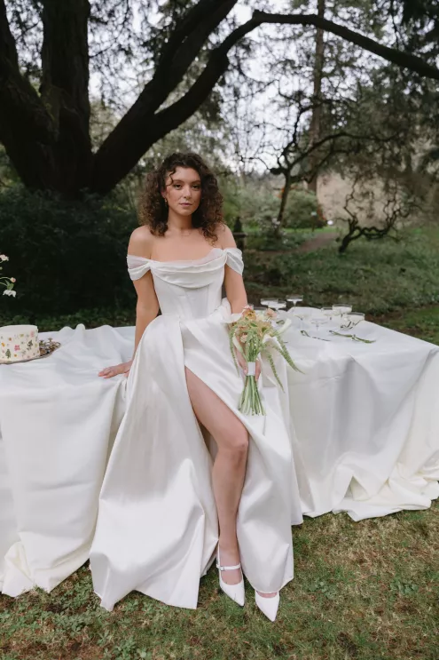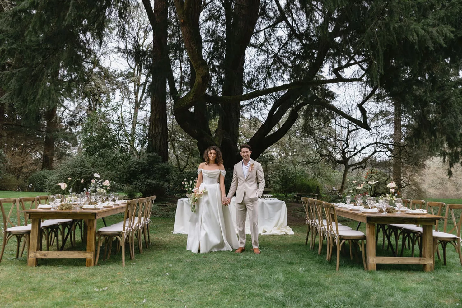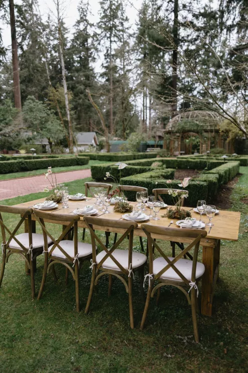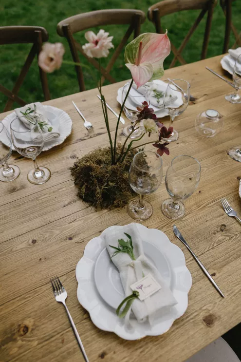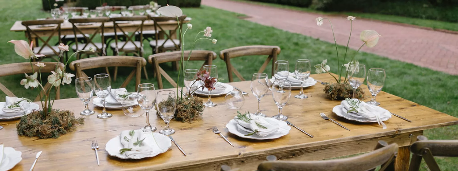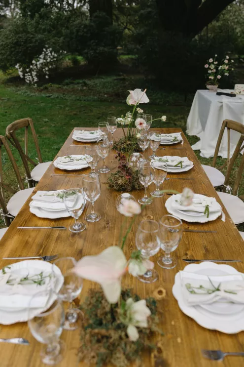 “I wanted a relaxed mix of timeless romance with a touch of vintage charm-old-money elegance, but effortless and down-to-earth,” Rachael Brubaker of Leave it to Polly said, “Think European countryside meets local garden party.”